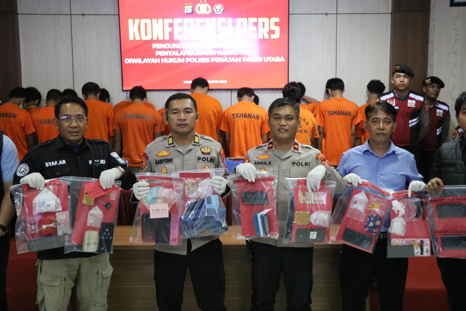 Tribratanews.kaltim.polri.go.id, Penajam – Satuan Reserse Narkoba Polres PPU mencatat capaian signifikan dalam pelaksanaan Operasi Antik Mahakam 2025. Dalam operasi yang digelar secara intensif, aparat berhasil membongkar 9 kasus peredaran narkotika, mengamankan 18 tersangka, serta menyita barang bukti sabu seberat bruto 135,89 gram, Selasa (12/8/2025). Wakapolres Kompol Awan Kurnianto, S.H., menegaskan bahwa hasil ini mencerminkan komitmen penuh Polres PPU dalam memberantas peredaran narkoba di wilayah hukumnya. “Tidak ada ruang bagi pelaku yang berupaya merusak generasi bangsa. Kami akan menindak tegas, sampai ke akar jaringan mereka,” ujar Kompol Awan. Dari 18 tersangka, 17 berjenis kelamin laki-laki dan 1 perempuan, dengan rentang usia…