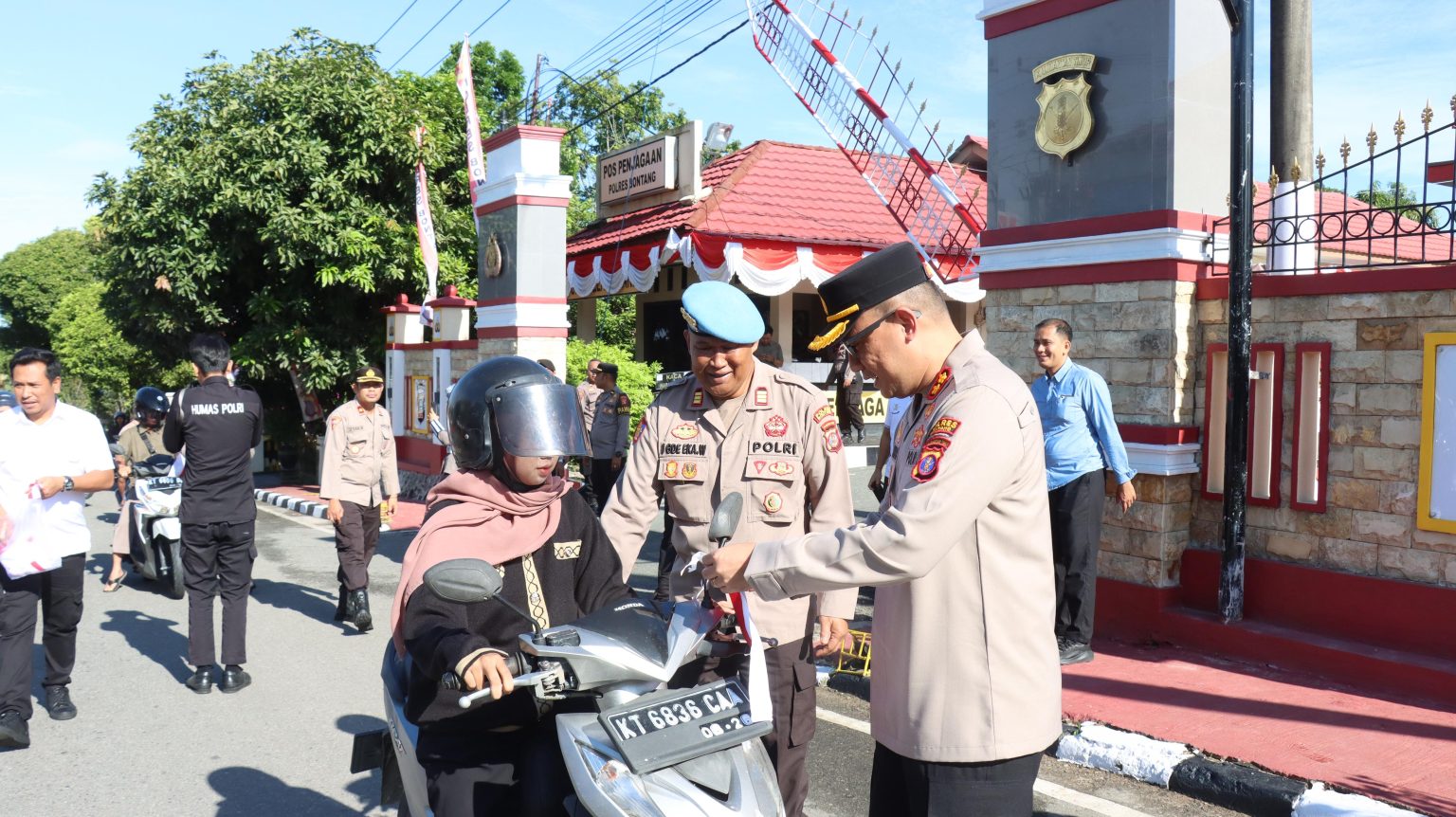 Tribratanews.kaltim.polri.go.id, Bontang – Dalam rangka menyemarakkan HUT RI ke-80, Polres Bontang menggelar aksi pembagian bendera Merah Putih kepada masyarakat di depan Mako Polres Bontang, Selasa (5/8/2025). Kapolres Bontang AKBP Widho Anriano, S.I.K., M.Si., didampingi jajaran pejabat utama serta anggota Polres Bontang, turut langsung membagikan bendera Merah Putih mini kepada para pengendara sepeda motor dan mobil yang melintas di kawasan tersebut. Aksi ini merupakan simbol ajakan kepada masyarakat untuk turut berpartisipasi aktif dalam perayaan kemerdekaan dengan menumbuhkan kembali semangat cinta tanah air dan nasionalisme, khususnya menjelang peringatan HUT RI ke-80. Kapolres Bontang menyampaikan bahwa kegiatan ini bukan hanya sekadar membagikan atribut,…
