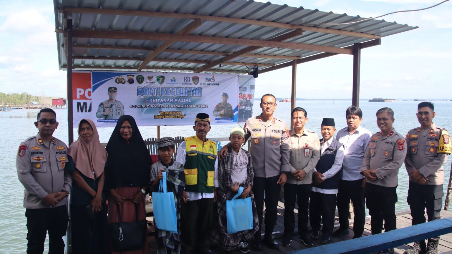 Tribratanews.kaltim.polri.go.id, PPU – Satuan Polisi Air dan Udara Polres Penajam Paser Utara melaksanakan kegiatan Bhakti Kesehatan berupa khitanan massal bagi anak-anak pengajian dan masyarakat pesisir, Rabu (10/12/25). Kegiatan yang mengangkat tema “Polri Penolong, Polri untuk Masyarakat” ini dipusatkan di Mako Sat Polairud Kayu Api, Kec.Penajam, Kab.PPU. Kegiatan ini dihadiri langsung oleh Kapolres PPU AKBP Andreas Alek Danantara, S.I.K., M.M., M.Tr.SOU., bersama jajarannya, perwakilan Bank BRI Petung, BPD Kaltim, Ketua BAZNAS PPU, serta Kepala Dinas Perikanan dan Kelautan PPU. Sebanyak 40 peserta juga hadir dalam kegiatan tersebut, terdiri dari jajaran Polres PPU, pemerintah daerah, tokoh masyarakat, lembaga keuangan, serta para orang…