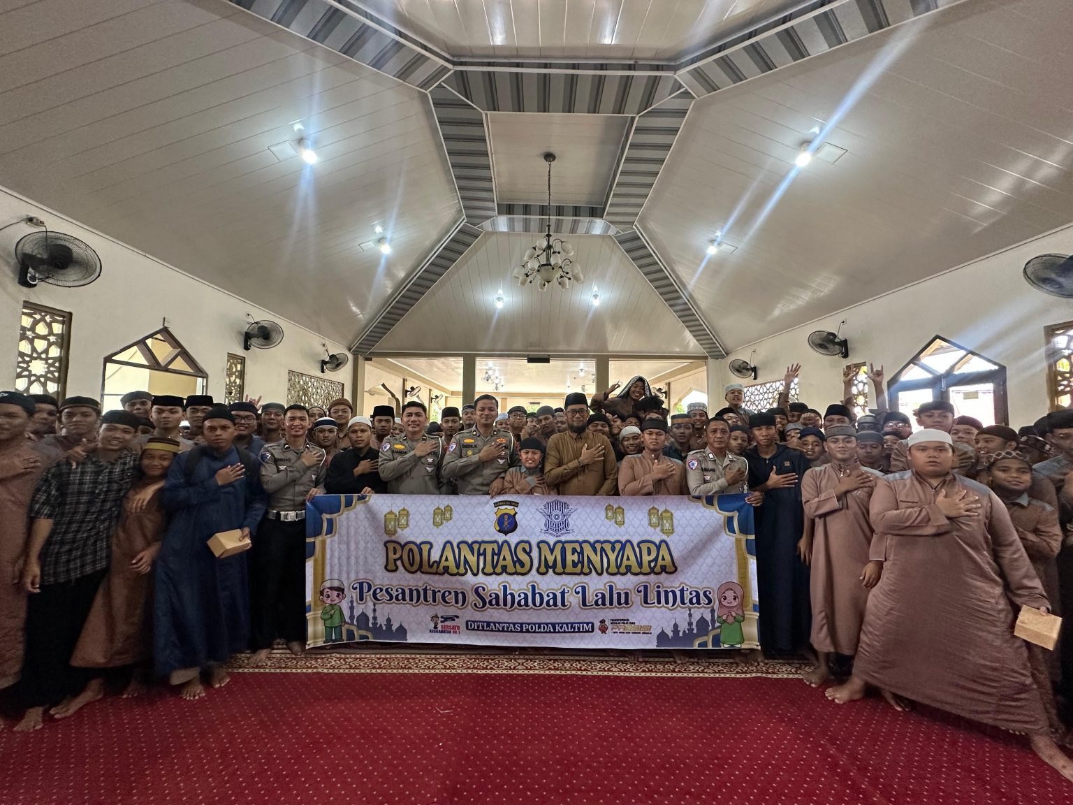 Tribratanews.kaltim.polri.go.id, Balikpapan – Subdit Keamanan dan Keselamatan (Kamsel) Ditlantas Polda Kaltim melaksanakan kegiatan Polantas Menyapa dengan tema “Pesantren Sahabat Lalu Lintas” di Pondok Pesantren Imam Syafi’i, Balikpapan Timur, pada Kamis (25/9/2025) pagi.