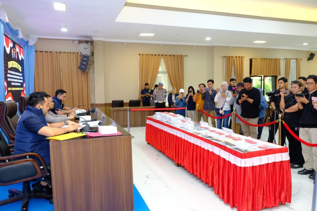 Konferensi pers dipimpin oleh Kasubbid Penmas Bidhumas Polda Kaltim AKBP Musliadi Mustafa, didampingi Kasubdit Tipidkor Ditreskrimsus Polda Kaltim AKBP Kadek Adi Budi Astawa, serta dihadiri para awak media dan jurnalis.