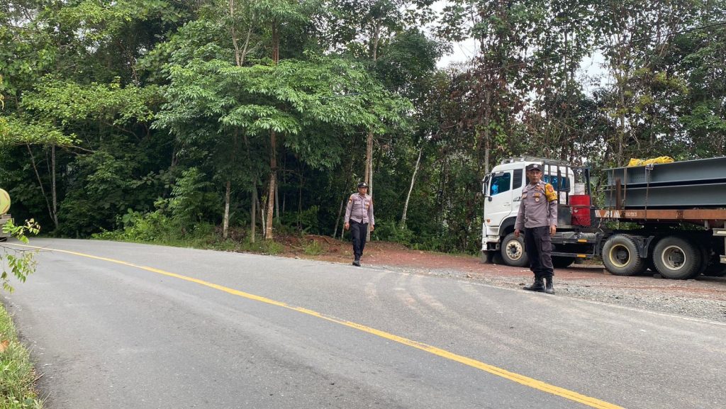 Tribratanews.kaltim.polri.go.id, Berau – Personil Polsek Kelay bergerak cepat mengevakuasi sebuah truk fuso bermuatan besi jembatan yang tergelincir di KM 100 Jalan Poros Berau-Samarinda pada Jumat (03/10/25) sekitar pukul 14.00 Wita. Insiden itu dipicu oleh kondisi jalan yang licin sehingga kendaraan tidak terkendali dan berpotensi membahayakan pengguna jalan lainnya.