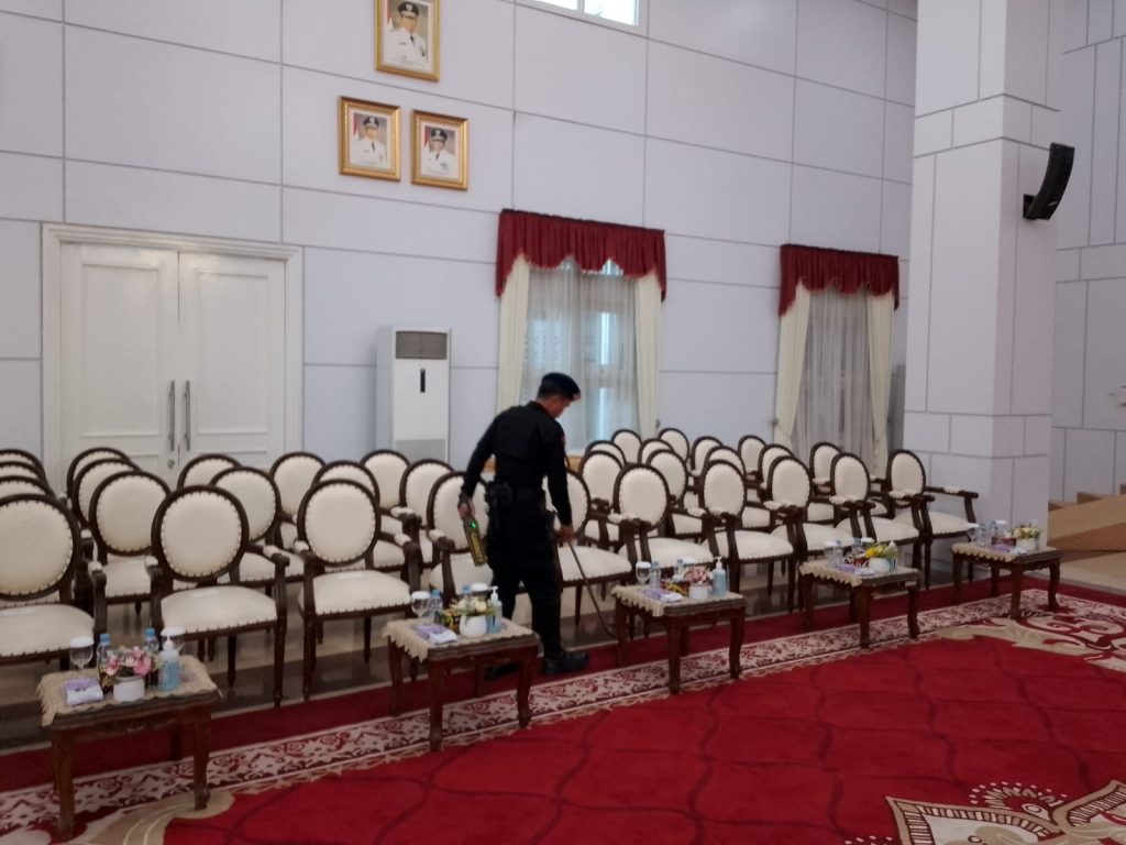 Pengamanan dimulai jauh sebelum acara berlangsung. Tim Penjinak Bom (Jibom) Gegana melakukan penyisiran menyeluruh di area kantor gubernur, mulai dari aula utama tempat pelantikan, jalur masuk-keluar tamu undangan, hingga lobi gedung. Pemeriksaan detail dilakukan untuk mencegah adanya potensi ancaman maupun benda berbahaya yang dapat mengganggu jalannya kegiatan.