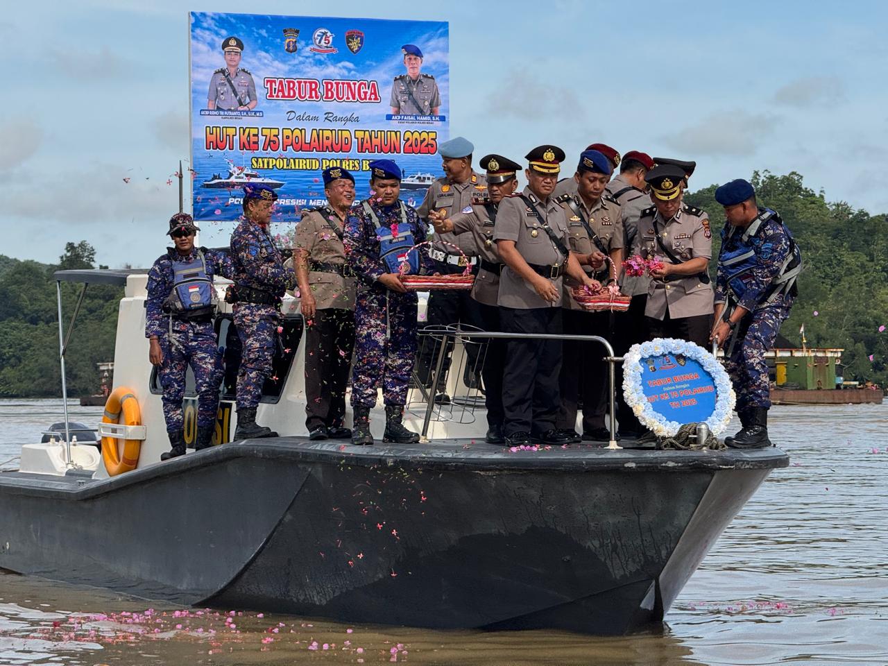 Tribratanews.kaltim.polri.go.id, Berau – Dalam rangka memperingati Hari Ulang Tahun ke-75 Polairud Tahun 2025, Sat Polairud Polres Berau gelar tabur bunga di Perairan Sungai, Selasa (25/11/2025).