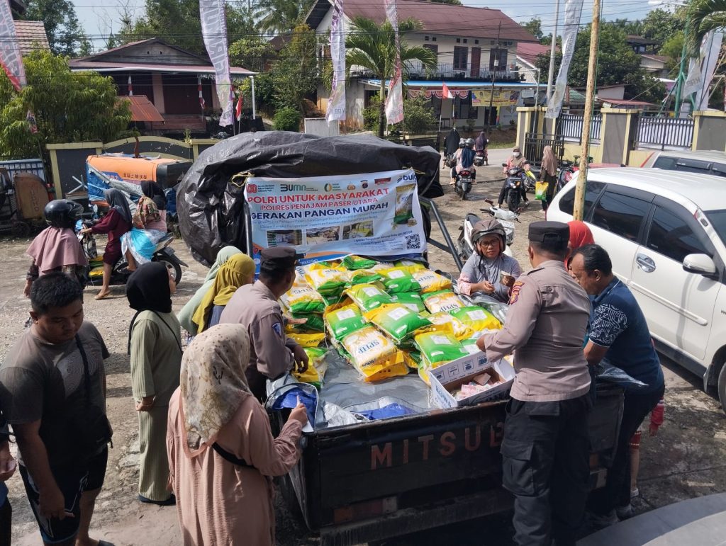 Tribratanews.kaltim.polri.go.id, PPU – Ratusan masyarakat memadati lokasi Gerakan Pangan Murah (GPM) yang digelar Polres Penajam Paser Utara (PPU) bersama Perum Bulog, Rabu (27/8/2025). Kegiatan ini menjadi bukti nyata kepedulian Polri dalam membantu warga memperoleh kebutuhan pokok dengan harga yang lebih terjangkau di tengah fluktuasi harga pasar.