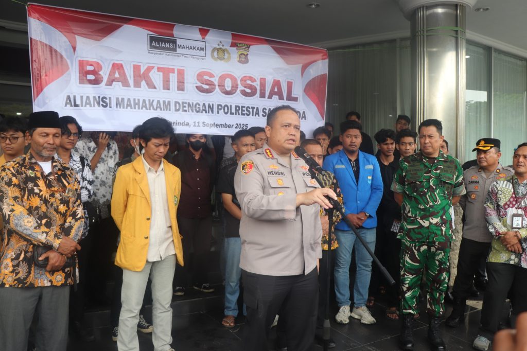 Kapolresta Samarinda, Kombes Pol Hendri Umar, S.I.K., M.H., menyampaikan bahwa kegiatan ini adalah bukti nyata kebersamaan berbagai pihak dalam mendukung kesejahteraan masyarakat. “Kolaborasi hari ini menggambarkan semangat sinergitas antara Polresta, Kodim, civitas akademika, BEM, dan Aliansi Mahakam. Meski peran berbeda, tujuan kita sama, yakni menciptakan Samarinda yang aman, baik, dan sejahtera,” ungkapnya.