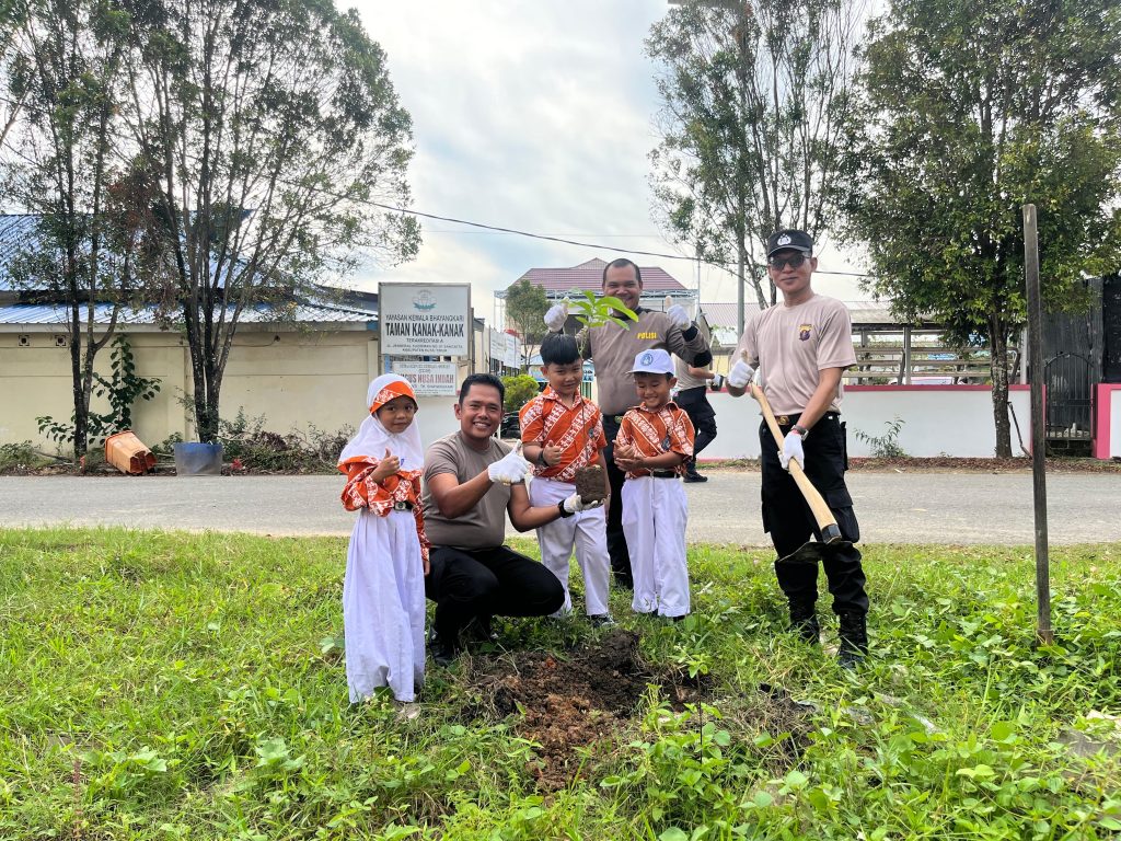Polsek Sangatta Utara Gaungkan Gerakan Indonesia ASRI, Libatkan Siswa TK Kumala Bhayangkari Tanam Pohon di Mako