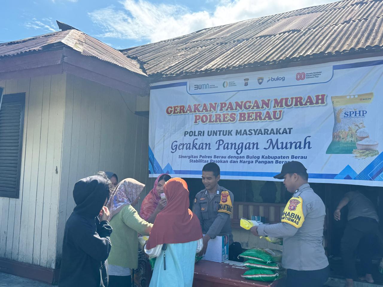Tribratanews.kaltim.polri.go.id, Berau – Dalam rangka mendukung program pemerintah menjaga stabilitas harga bahan pokok, Polsek Talisayan bersama Pospol Biatan menggelar Gerakan Pangan Murah (GPM) dengan menyalurkan beras SPHP kepada masyarakat, Minggu (14/09/25). Kegiatan ini mendapat sambutan hangat dari warga karena membantu mereka memperoleh kebutuhan pokok dengan harga yang lebih terjangkau.